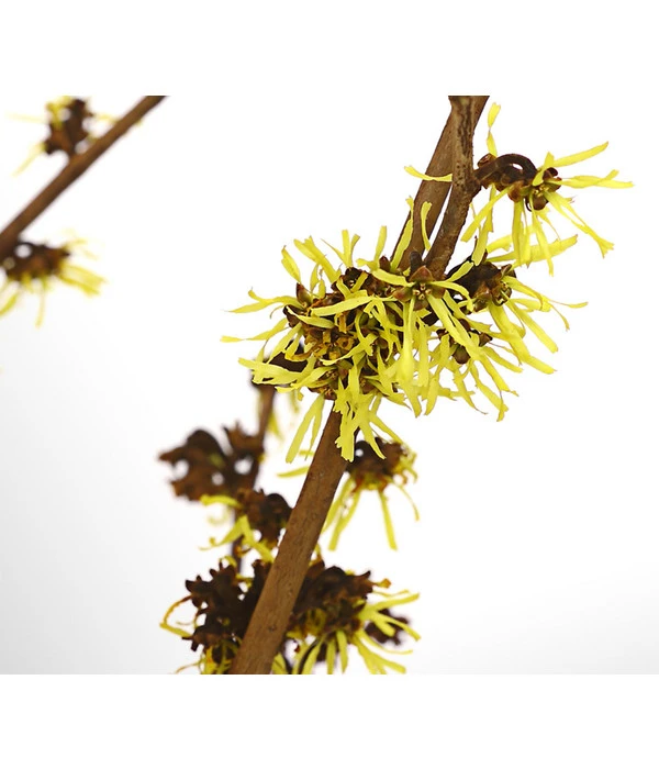 Die langsamwüchsige Zaubernuss ist ein sehr attraktiver Winterblüher. Die Pflanze bildet einen locker trichterförmigen, ausladenden Strauch, der durchaus Größen von bis zu 5 m erreichen kann. Im Alter wächst die Zierpflanze verstärkt in die Breite. Die hauchdünnen und zarten Blütenblätter der Zaubernuss widerstehen selbst Frösten von -10 bis -12° Celsius. Dann rollen sie sich zusammen und öffnen sich erst wieder, wenn die Temperatur über dem Gefrierpunkt liegt. Die aparten Blüten der Chinesischen Zaubernuss verströmen einen zarten Duft und stellen einen Höhepunkt im winterlichen Garten dar, denn die Blütezeit reicht von Januar bis März. Je nach Sorte erstrahlen die Blüten in intensivem Gelb, Orange oder Rot. Im Sommer schmückt sich die Chinesische Zaubernuss mit großen, dunkelgrünen Blättern, die sich im Herbst mit einer leuchtend gelben Färbung gekonnt erneut in Szene setzen.