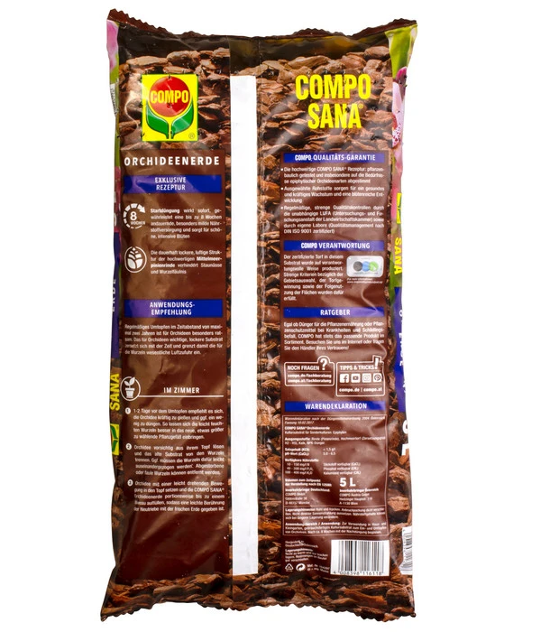 Orchideen gehören zu den Pflanzen, die in den intensivsten Farben und edelsten Formen gedeihen – wenn man auf ihre besonderen Ansprüche eingeht. Die COMPO SANA® Orchideenerde ist eine speziell abgestimmte Blumenerde von bester Qualität. Sie ist dank der hochwertigen Pinienrinde von luftig-lockerer Beschaffenheit, so wie es Orchideen benötigen. Außerdem sorgt diese Struktur dafür, dass sich sowohl Dünger als auch Gießwasser optimal verteilen können – die für Pflanzen gefährliche Staunässe wird vermieden, sodass sich die Blüten bestens entwickeln können. Dank der in der Blumenerde enthaltenen Start-Düngung werden die Pflanzen optimal bis zu 8 Wochen mit Nährstoffen versorgt.