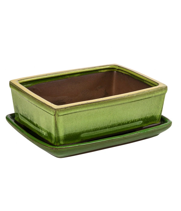 Dehner Keramik-Bonsaischale, rechteckig, gelb/hellgrün, ca. B21/H7,5/T15 cm