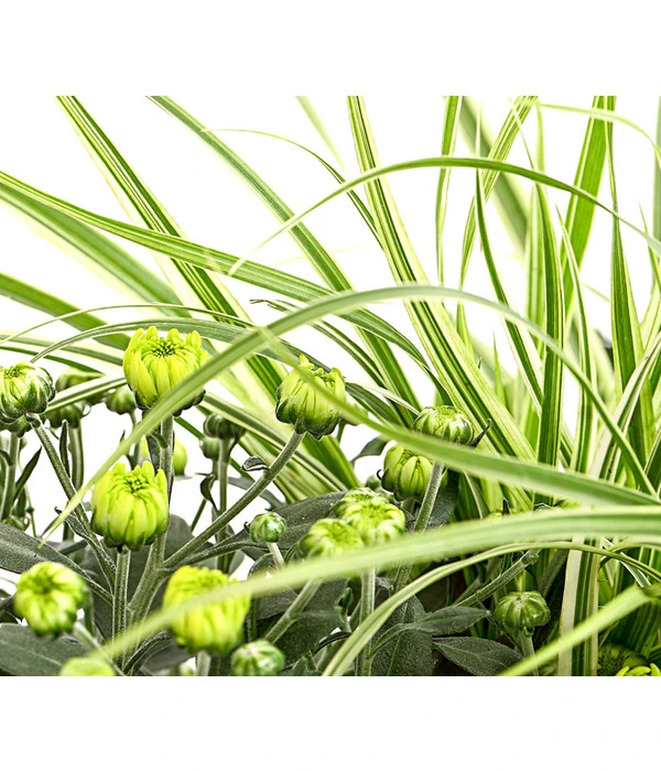 Sobald die abendliche Kühle den kommenden Herbst ankündigt, geht auch den letzten Sommerblumen schon langsam die Puste aus. Wer dann nach robuster Blütenpracht sucht die bis zur Winterzeit stand hält, landet meist bei den Chrysanthemen, die mit ihrer geballten Blütenpower den Garten bis in den November in ein einzigartiges Farbenfeuerwerk verwandeln. Ein toller Herbstschmuck für Terrassen und Balkone sind unsere bepflanzten Chrysanthemen-Kästen. Inmitten der knospigen Blüten sitzt, passend zur Farbe des Kastens und der Blütenfarbe, jeweils ein dekoratives Ziergras, dass die herbstliche Stimmung verstärkt und den bunten Kasten auflockert. Ein stimmungsvoller Blickfang, der sich auch ideal als herbstliche Begrüßung vor dem Hauseingang eignet.