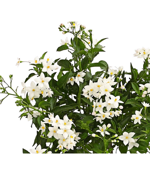 Der Jasminblütige Nachtschatten gehört der gleichnamigen Pflanzenfamilie der Nachtschattengewächse an. Lassen Sie sich von den Namen ‚Jasmin‘ nicht in die Irre führen, der Sommerjasmin hat nichts mit einem Jasmin oder gar dem Falschen Jasmin gemein, vielmehr trägt er seinen Namen aufgrund der schneeweißen Blüten, die in Größe und Form dem Jasmin unheimlich ähneln. Hierzulande gilt das Nachtschattengewächs als blühfreudige, rankende Balkon-, Kübel-, oder sogar Ampelpflanze, das bis in den späten Herbst hinein seine sternförmigen Blüten in voller Pracht zeigt. Dabei ist sie in der Pflege völlig unkompliziert.