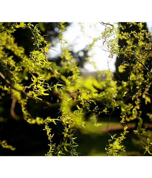 Betrachten Sie in aller Ruhe die wunderschön gedrehten Zweige und die Rinde, die sich in einem hochattraktivem Gelborange zeigt. Damit macht die Lockenweide ‚Erythroflexuosa‘ wirklich Furore! Denn mit dem spannenden Kontrast zum eher dunkelgrünen, schmalblättrigen Laub wirkt dieses Ziergehölz wie ein seltenes Schmuckstück in Ihrem Garten. Der Laubstrauch wächst zunächst straff aufrecht und neigt sich später zu einem bogig überhängenden Wuchs. In der Blütezeit von März bis April tragen die männlichen Pflanzen flauschige, silbrige Kätzchen, die dann später gelb erscheinen. Wobei die ‚Erythroflexuosa‘ die wohl am frühesten blühende Weide ist – manchmal sogar schon im Winter! Sie werden Ihre Lockenweide auch deshalb schätzen, weil sie sich in den unterschiedlichsten Funktionen pflanzen lässt: in Einzelstellung, als Zierbaum, als Schutzpflanzung oder ganz bewusst als Insektenfutterpflanze. Sie kann eine Wuchshöhe von 4-6 m erreichen, hat ein hohes Ausschlagvermögen und ist ganzjährig gut schnittverträglich. Schreiten Sie also schnellstmöglich zur Tat und setzen Sie in Ihrem Garten mit der Lockenweide ‚Erythroflexuosa‘ ein zauberhaftes, neues Highlight!