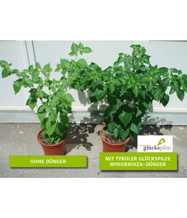 Mykorrhiza Soluble ist eine vielseitige Mischung aus 22 Mykorrhiza-Pilzen und 19 anderen nützlichen Bodenmikroorganismen und sorgt für eine rasche Wirkung bei fast allen Pflanzen- und Bodenarten. Das sich entwickelnde natürliche mikrobielle System gewährleistet verbesserte Wasser- und Nährstoffversorgung und stimuliert Wachstum und Vitalität der Pflanze. Besonders bei natürlichen Böden werden für die Pflanze Nährstoffe verfügbar, auf die sie sonst nicht zugreifen könnte. Auch werden Schadstoffe im Boden vom Pilz ab- und umgebaut, sodass sie die Pflanze nicht mehr schädigen. Vom Hobbygärtner über den gewerblichen Gartenbau bis hin zur Land- und Forstwirtschaft – durch das breite Spektrum an Pilzen und Bodenmikroorganismen findet jede Pflanze die geeigneten Symbiosepartner. Schon nach kurzer Zeit werden Sie die Vorteile dieser Symbiosen feststellen können. Die Pflanze entwickelt ein allgemein kräftigeres Wachstum und die Blätter zeigen ein satteres Grün. Der Unterschied kann sich sehen lassen.