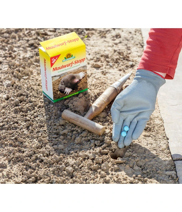 Haben Sie eine wunderschöne Rasenfläche, die allerdings häufiger von Maulwürfen durchwühlt wird? Dann ist Maulwurf-Stopp von Neudorff genau die richtige Lösung für Sie. Mit diesen kleinen und sehr effektiven Drops vertreiben Sie Maulwürfe schonend und gleichzeitig wirkungsvoll aus Ihrem Garten. Graben Sie im Abstand von wenigen Zentimetern Löcher in den Boden und legen Sie ein bis zwei der kleinen Drops hinein. Maulwürfe haben einen sehr ausgeprägten Geruchssinn und reagieren somit auf bestimmte Substanzen. Die mit Duftstoffen versetzten Drops sorgen dafür, dass die Maulwürfe in Ihrem Garten die behandelte Fläche meiden bzw. verlassen.