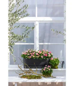 Ecopots Kunststoff-Schale Sofia Mit Wassersystem, Oval, Dunkelgrau, Ca. B30/H13,5/T13 Cm