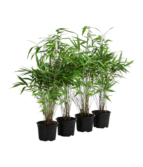 Seine ursprüngliche Heimat liegt zwar im fernen Ostasien, doch seit Mitte des 19. Jahrhunderts sind die verschiedenen Bambusarten auch in europäischen Parks und Gärten zu bewundern und haben bis heute nichts von ihrer Beliebtheit eingebüßt. Unter den vielen Bambusarten ragt die auch als Schirmbambus bekannte Art besonders heraus, denn sie trägt nicht nur stolz ein dichtes, immergrünes Blätterkleid, sondern bezaubert auch durch einen aufrechten, leicht überhängenden Wuchs, der sie zu einem ganzjährig attraktiven Blickfang auch in Ihrem Garten machen kann. Schnell und dicht wachsend bietet sich Bambus auch für eine Gruppen- oder Reihenpflanzung an, weshalb wir Ihnen hier im Pflanzenpaket Gartenbambus gleich ein 4er Set dieser attraktiven Gewächse anbieten. Sie suchen einen dekorativen, immergrünen Sichtschutz neben der Terrasse? Sie möchten eine ganzjährig blickdichte Hecke mit frischgrünen Blättern um Ihr Grundstück ziehen? Dann holen Sie sich gleich das Pflanzenpaket Gartenbambus 4er Set und schon bald zieht ein Hauch asiatisches Flair in Ihrem Garten ein.