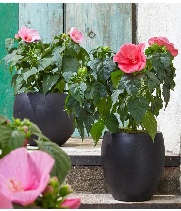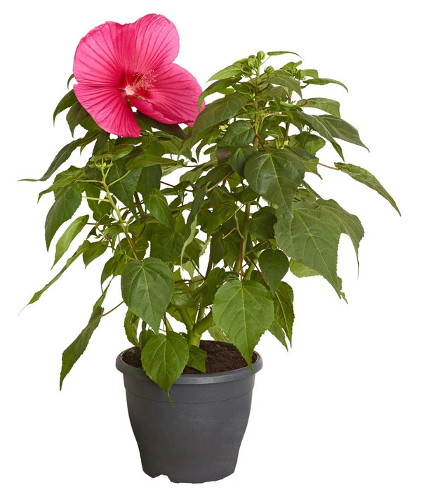 Wohl jeder kennt den Hibiskus. Der Sumpf-Roseneibisch oder Stauden-Hibiskus jedoch, übertrifft seine Verwandten in zwei essentiellen Punkten: in Blütengröße und Robustheit. Ursprünglich aus Nordamerikas Marsch- und Sumpfland stammend, kommt der Hibiskus heute auch auf Hawaii, in Frankreich, Italien und Spanien vor. Beim Sumpf-Roseneibisch handelt es sich um eine mehrjährige Staudenpflanze für Balkon, Terrasse oder den Garten. Sie kann bis zu 1,5 Meter hoch werden und trägt von Spätsommer bis Herbst wunderschöne Blüten, die einen Durchmesser von 30 cm erreichen können. Diese imposanten Blickfänge sind auch der Grund, warum die Pflanze gerne Hilfe in Form von Stützen annimmt, um ihre dekorative Last sicher tragen zu können. Den attraktiven Rahmen für die exotischen Blütenschönheiten bildet das dunkelgrüne Laub mit großen, herzförmigen Blättern.